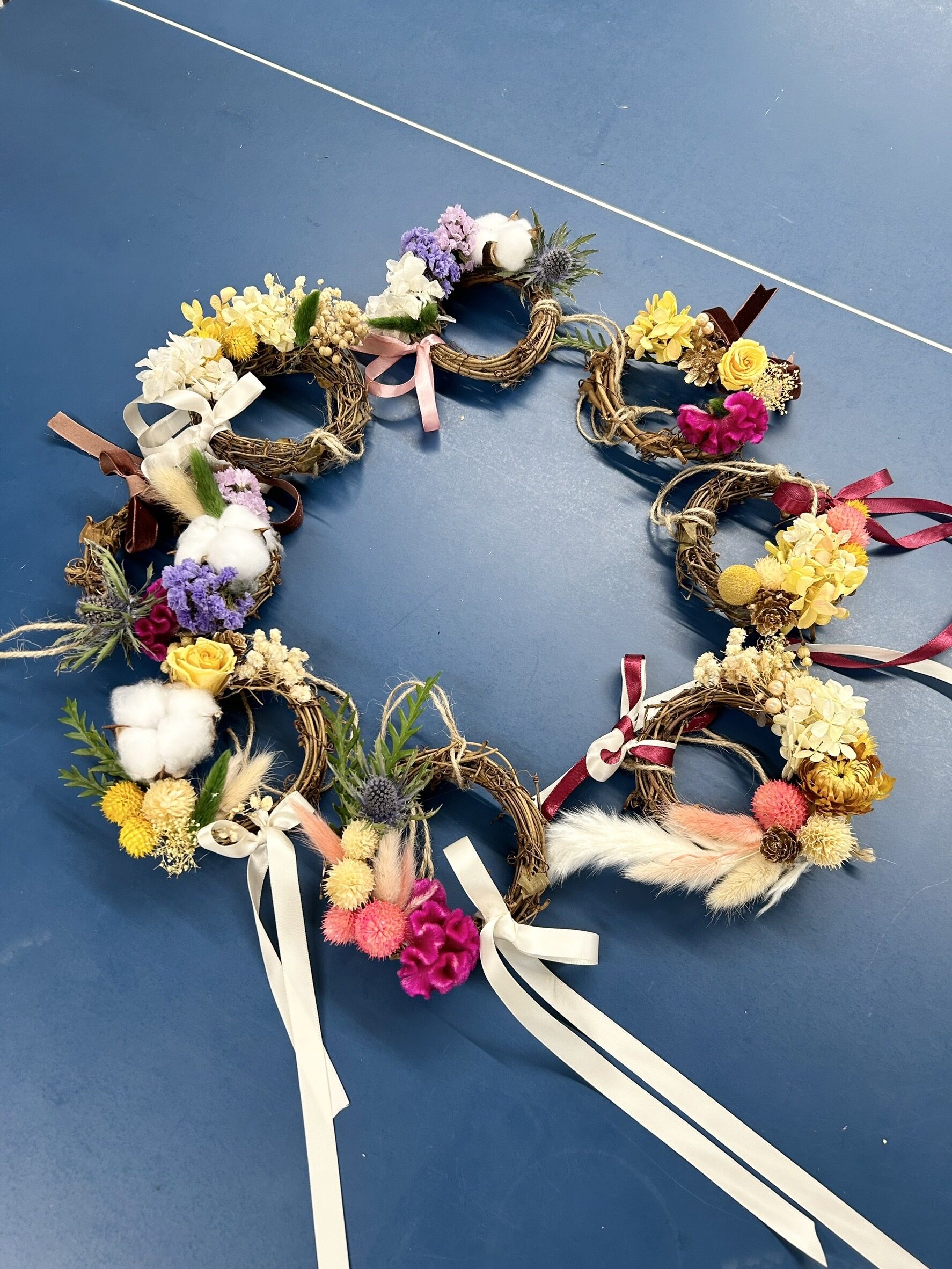 和やかな雰囲気の中、素敵なリースがたくさん出来上がりました。